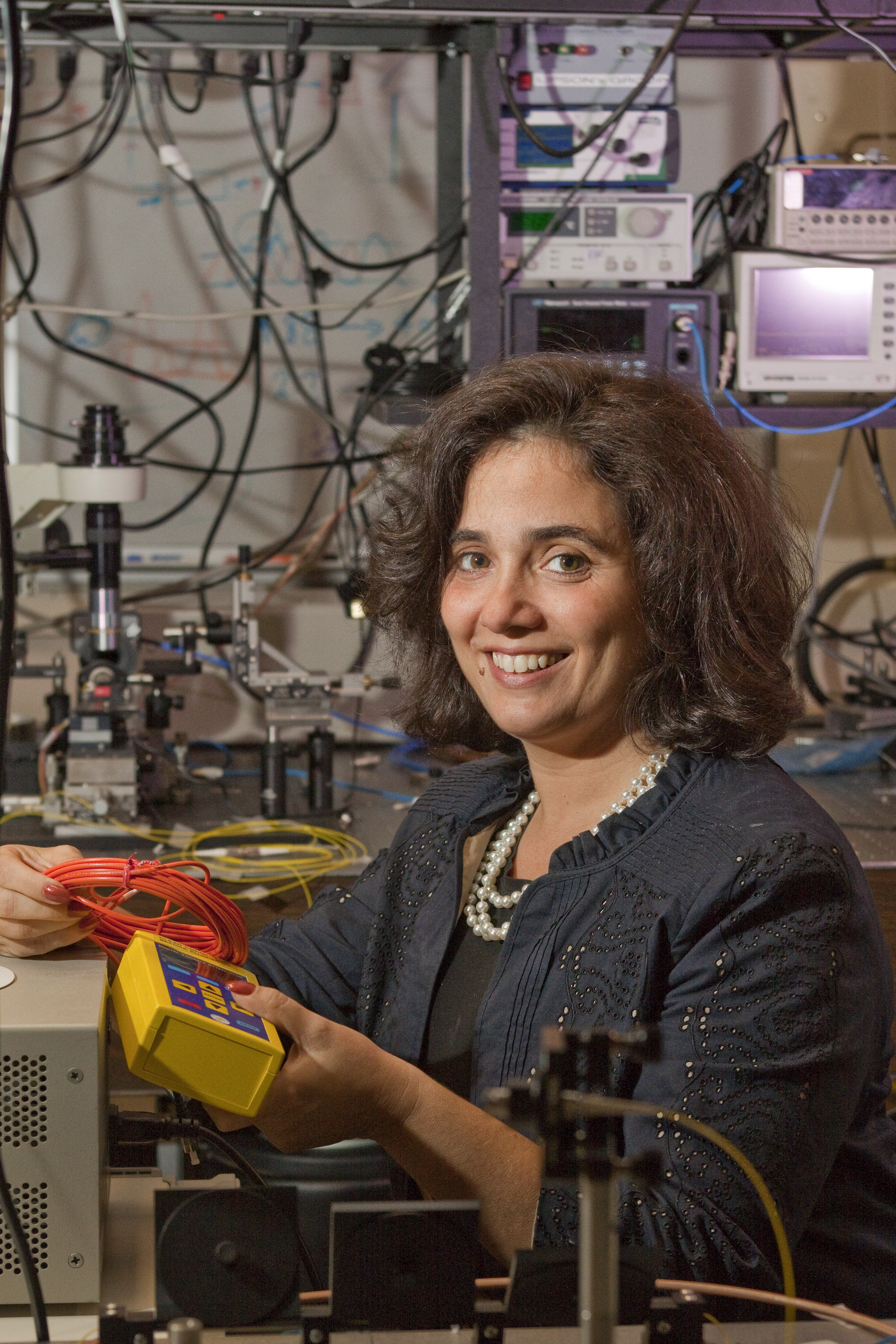 Michal Lipson is an optical physicist working at the intersection of fundamental photonics and silicon fabrication engineering to develop devices that harness the information-processing capabilities of light. Although manufacturing conventional digital chips etched in silicon is a mature technology, these electronic circuits cannot match the theoretical speed and capacity of optical systems. Lipson has emerged as a leader, despite relatively modest resources, in designing optical and hybrid opto-electronic devices with silicon-based fabrication methods. Carefully regulated etching of silicon can create linear or circular paths (waveguides) for light to traverse; Lipson has demonstrated that ring modulators (circular waveguides) can effectively serve as switches for light passing through adjacent linear waveguides when the frequency of light pumped into the modulators is precisely tuned relative to the linear waveguide. Her continued refinement of both opto-electronic and purely optical circuits has decreased their size, increased their efficiency, and accelerated their switching speed. The resulting silicon-based photonic integrated circuits have the potential to improve signal transmission and processing dramatically. Lipson’s elegant solutions to a variety of theoretical and engineering challenges in silicon photonics are paving the way for the future development of practical and powerful optical computing devices.