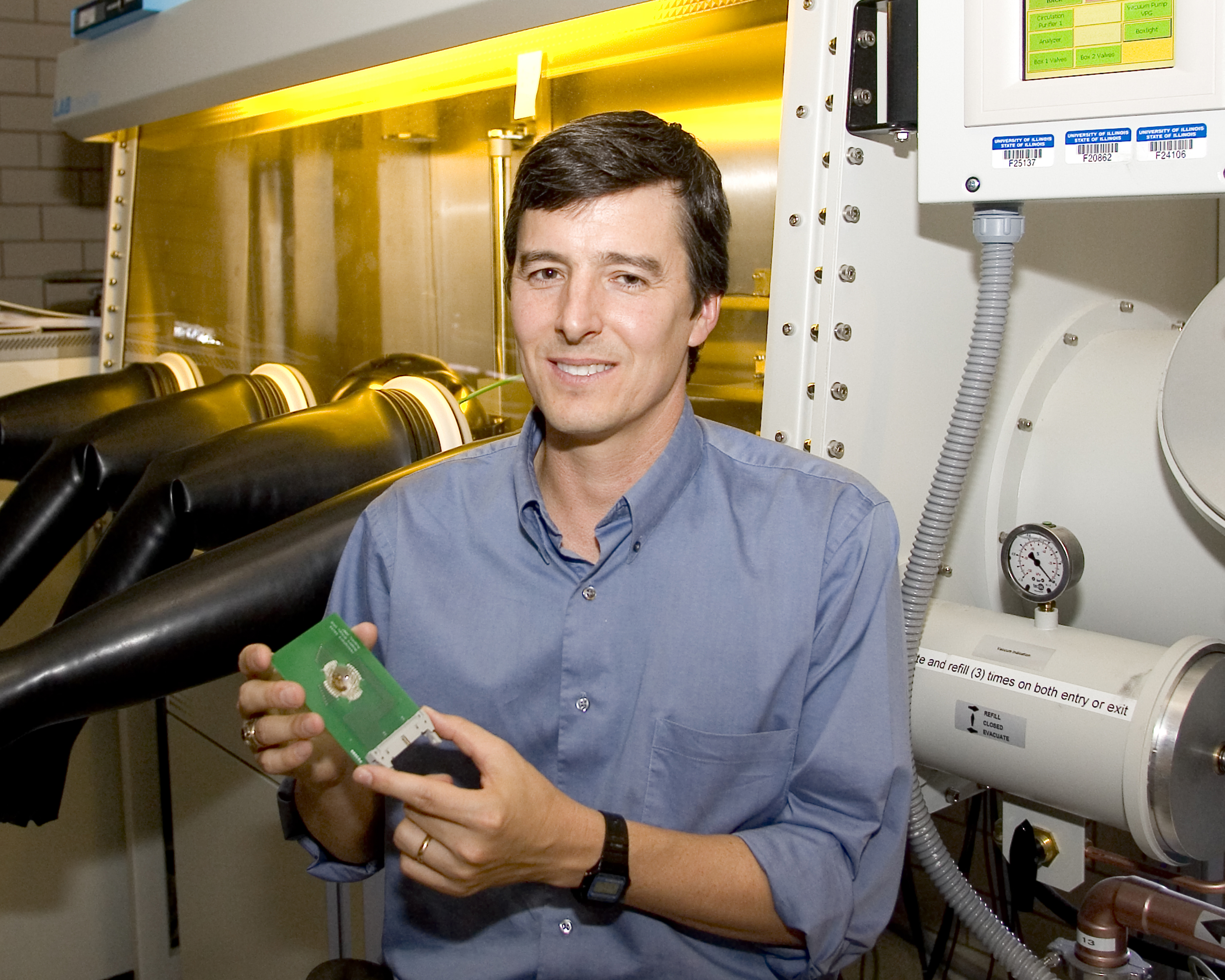 John Rogers is a materials scientist noted for his contributions to applied physics, particularly his leadership in developing flexible electronic devices. In contrast to traditional solid-state electronics, where components are fabricated on semiconductor wafers, researchers have recently discovered that a host of organic (i.e., carbon-based) molecules can also act as semiconductors. In an early line of research, Rogers used microlithographic stamping technology to design high-density, complex circuits that could be fabricated on a flexible substrate similar to paper. He has raised the performance of such circuits substantially, to the point that they are finding their way into devices with modest speed requirements, such as commercial display technologies. Nevertheless, the capacity of known organic semiconductors to perform high-speed computations remains limited. To address this, Rogers has also devoted significant effort to developing flexible semiconducting films, based on silicon or carbon nanotubes, literally to stretch the boundaries of signal processing capacity on flexible substrates. Such devices can be placed in locations where standard silicon wafer technologies are impractical or impossible; the myriad of potential applications include photovoltaic cells, adaptive optics, electronic textiles, and implantable biomimetic circuits. Through his basic research in nanotechnology, chemical engineering, and applied physics, Rogers is building the foundation for a revolution in manufacture of industrial, consumer, and biocompatible electronics.