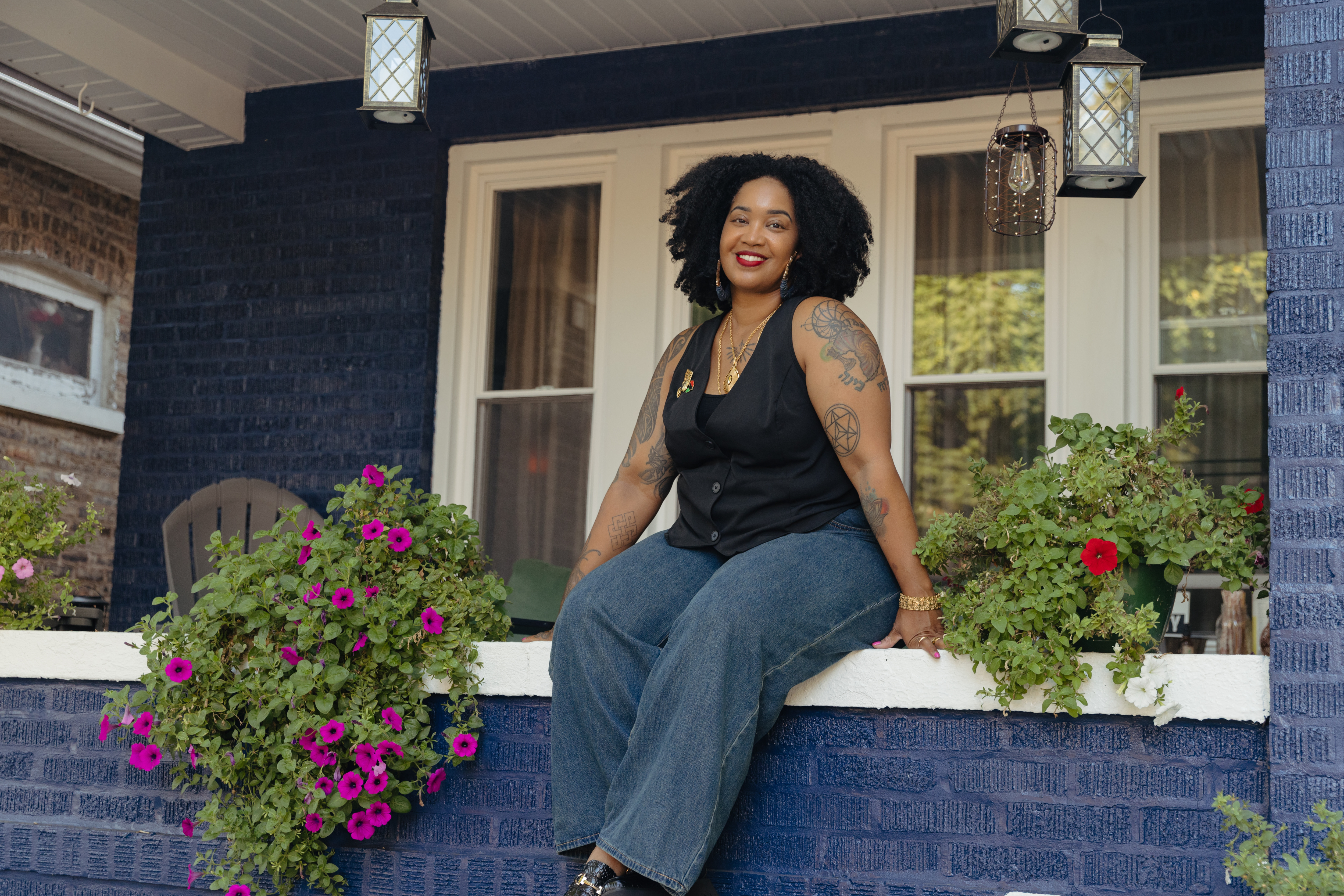 Johnson’s latest project is UnBlocked Englewood (2023–ongoing), developed in partnership with the Chicago Bungalow Association. The arts-driven project aims to reclaim vacant lots and restore homes that were impacted by land sale contracts and in need of costly repairs, reimagining home improvement and neighborhood revitalization as public art. Johnson’s creative approach to reparative action led to a public arts grant from the City of Chicago, and to date half of the project’s 25 homes have been repaired. Through a practice that answers history with action, Johnson realizes the potential for art to create thriving communities and provides a roadmap for the many other cities facing similar challenges arising from entrenched socioeconomic divides.