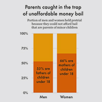 Parents of children under 18 constitute over half of those who are in pretrial detention because they cannot afford to post bail, according to analysis from the Prison Policy Initiative (PPI). Though they are legally presumed innocent, jail incarceration keeps them from and puts their children at risk, impacting over 150,000 children. Especially considering recent increases in women’s jail incarceration, PPI, supported by MacArthur, suggests the impact may be even more significant than these numbers show.